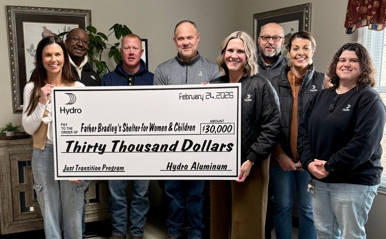 Hydro Aluminum’s $30,000 donation to the Fr. Bradley Shelter For Women and Children will pay for much-needed floor, paint, walls and bathroom upgrades.