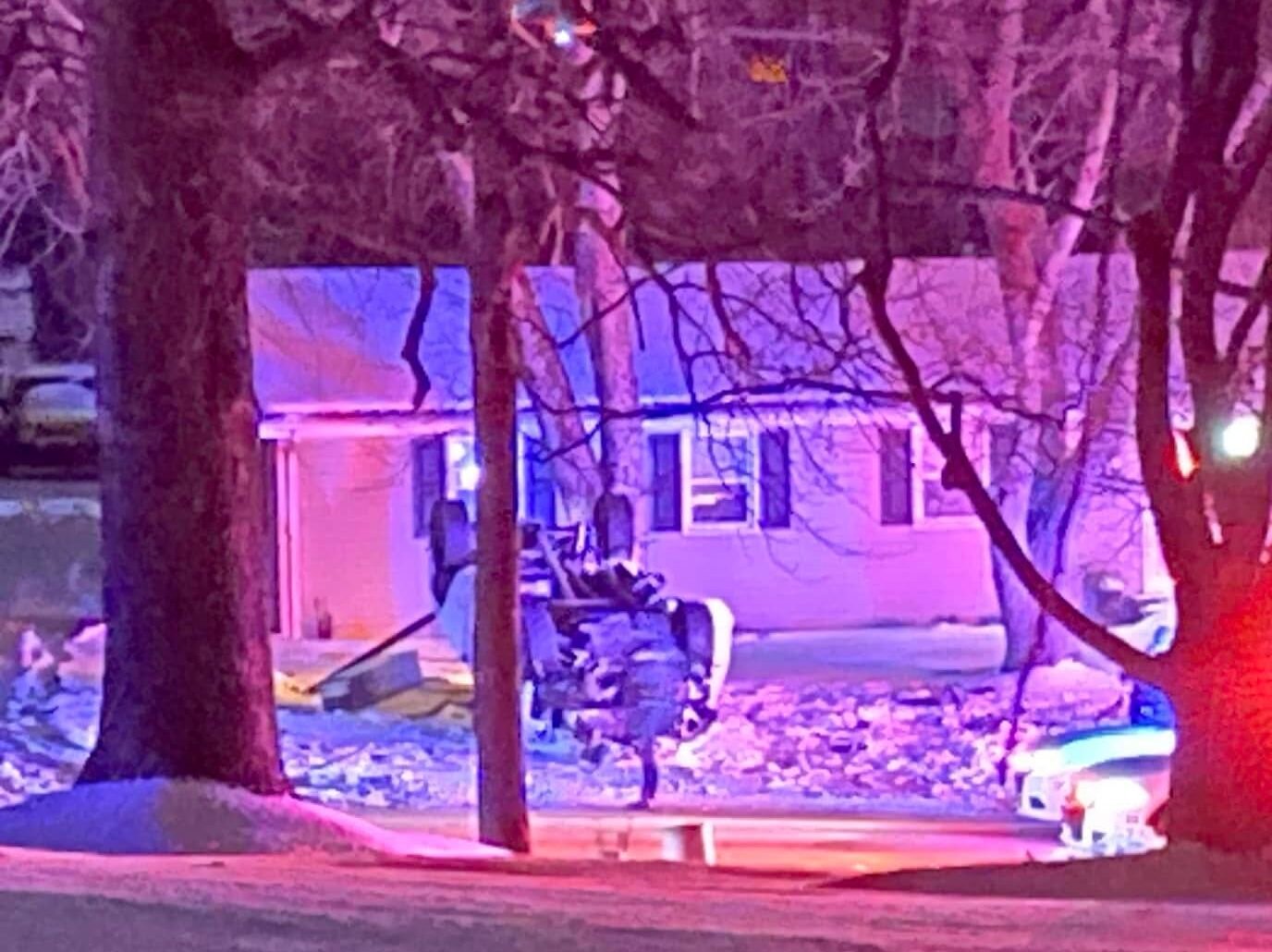 A neighbor took this photo of the truck that flipped onto the yard of a home on Ky. 351 after a high-speed chase Friday night. (Facebook photo by Allison White)