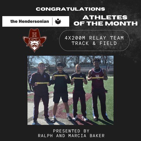 Henderson County’s 4×200 relay team with King Combest, Avant Baxter, Jack Dalton and Tyce Smith has been named March’s Athletes of the Month. Their dominant month included breaking the school record indoors, placing 7th at the 3A state indoor championships, winning the 4×200 at the Colonel Classic on March 14 and capturing another victory at the Spartan Relays at South Warren. In just a short time together, the quartet has already shattered the indoor school record and shown dominance as the outdoor season ramps up. Their competitive drive has quickly made them one of the top relays in the state.