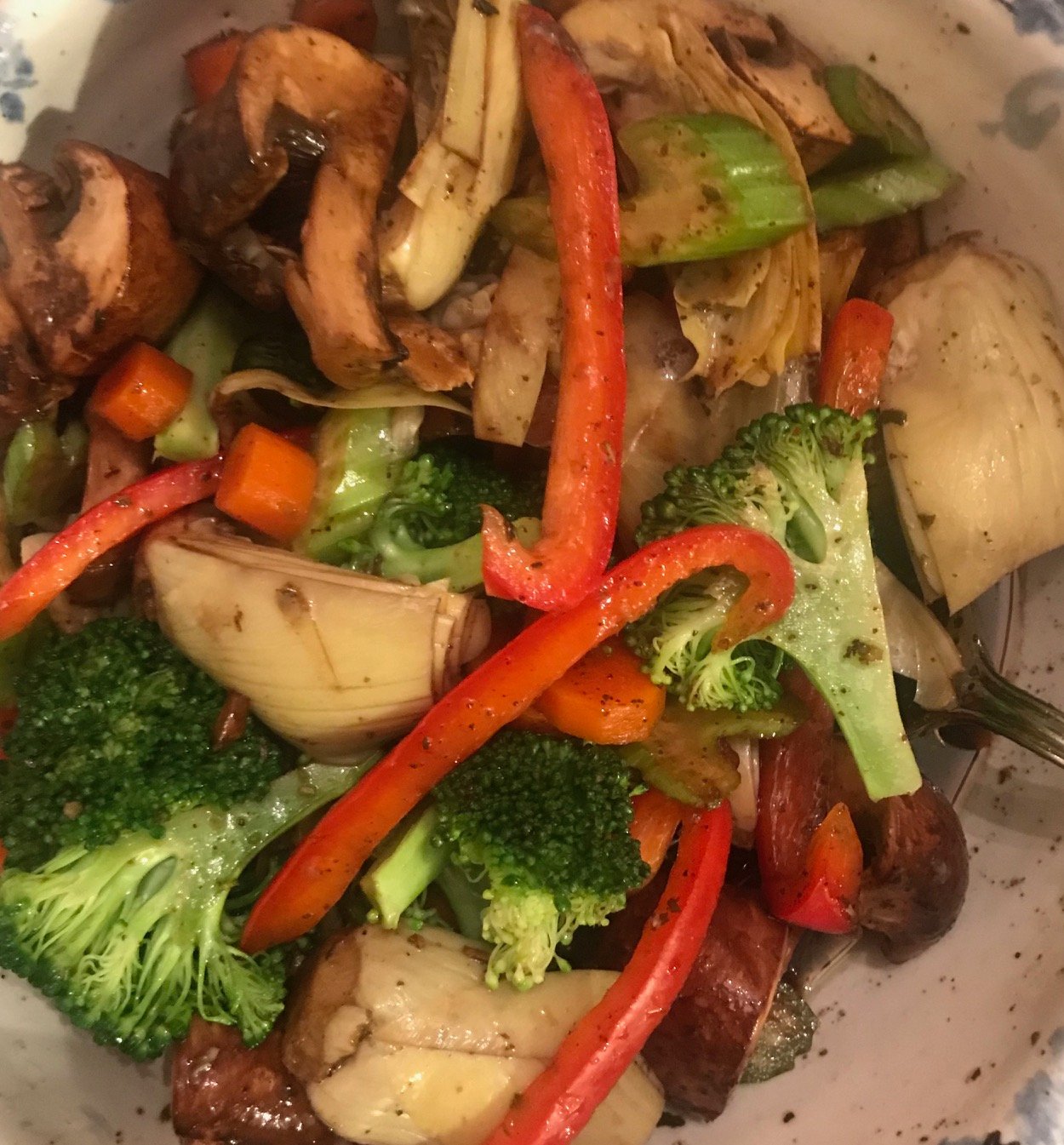 Wash fresh vegetables before preparing them. Cut broccoli flowerets into quarters. Steam broccoli for 4 to 6 minutes or until tender crisp and set aside. In a large bowl, combine mushrooms, carrots, artichoke hearts, celery, and red pepper, Pour hot marinade over the vegetable mixture, and stir to coat. Cover and chill or serve warm if desired. Drain vegetables with a slotted spoon when serving. Toss in broccoli and stir to coat just before serving to retain broccoli’s color better.