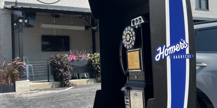 Except for a faux-rotary dial pay phone that recently appeared outside Homer’s Barbecue on Second Street, bearing the Homer’s name. It doesn’t have a dial tone, though (that might take some more explaining) and Homer’s owner Casey Todd said he doesn’t expect it to ever be functional. Not exactly.